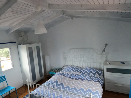 De slaapkamer van ca. 22 m2 met natuurlijk airco.